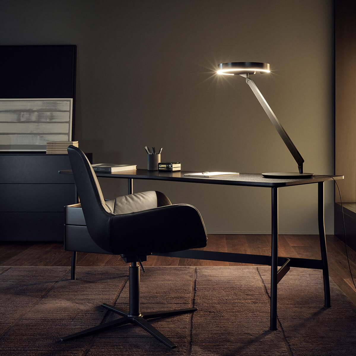Mit ihren raumsparenden Proportionen eignet sich die Occhio Gioia tavolo vor allem für kleinere Standorte, etwa für kleiner bemessene Schreibtische, Pulte und Arbeitsnischen im Büro oder Homeoffice. Besonders schick macht sich die Tischleuchte aber auch im Wohnbereich, zum Beispiel als erlesenes Design Piece auf Sideboards und Beistelltischen.