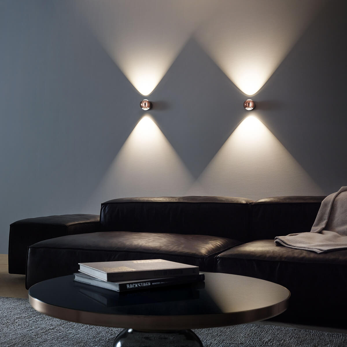 Kennzeichen der io verticale Volt D ist der kugelförmige Leuchtenkopf mit Linsenoptik, der beidseitig brillantes Licht ausstrahlt. Der Kopf ist frei drehbar und ermöglicht es, das kegelförmige Licht präzise zu steuern. Das Ergebnis ist ein dynamisches, geometrisch geprägtes Lichtspiel, das jedem Raum eine neue Dimension verleiht. Ob im heimischen Flur, Wohnbereich oder als effektvolle Akzentbeleuchtung in Hotels und Lounges – die Leuchte setzt überall spektakuläre Highlights.