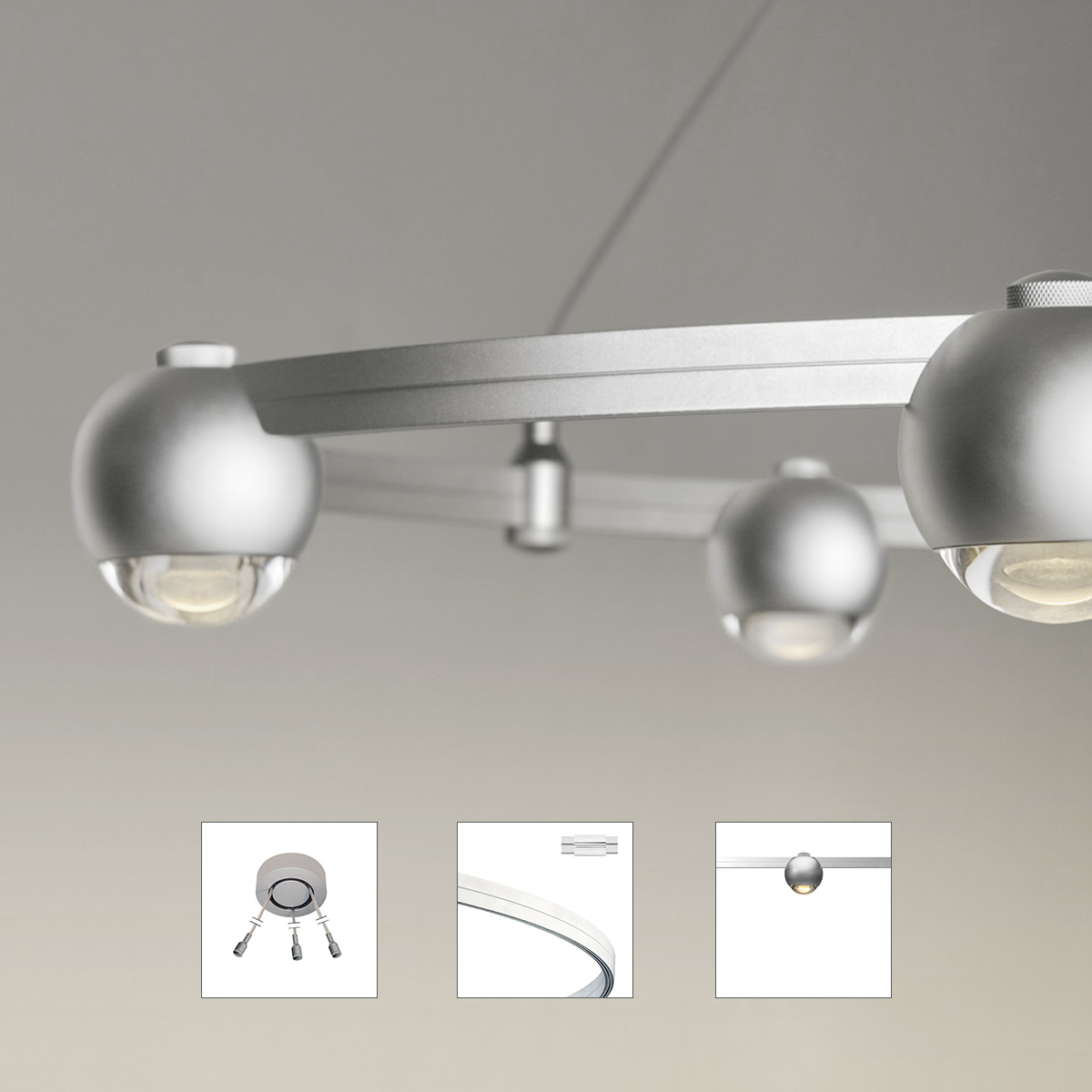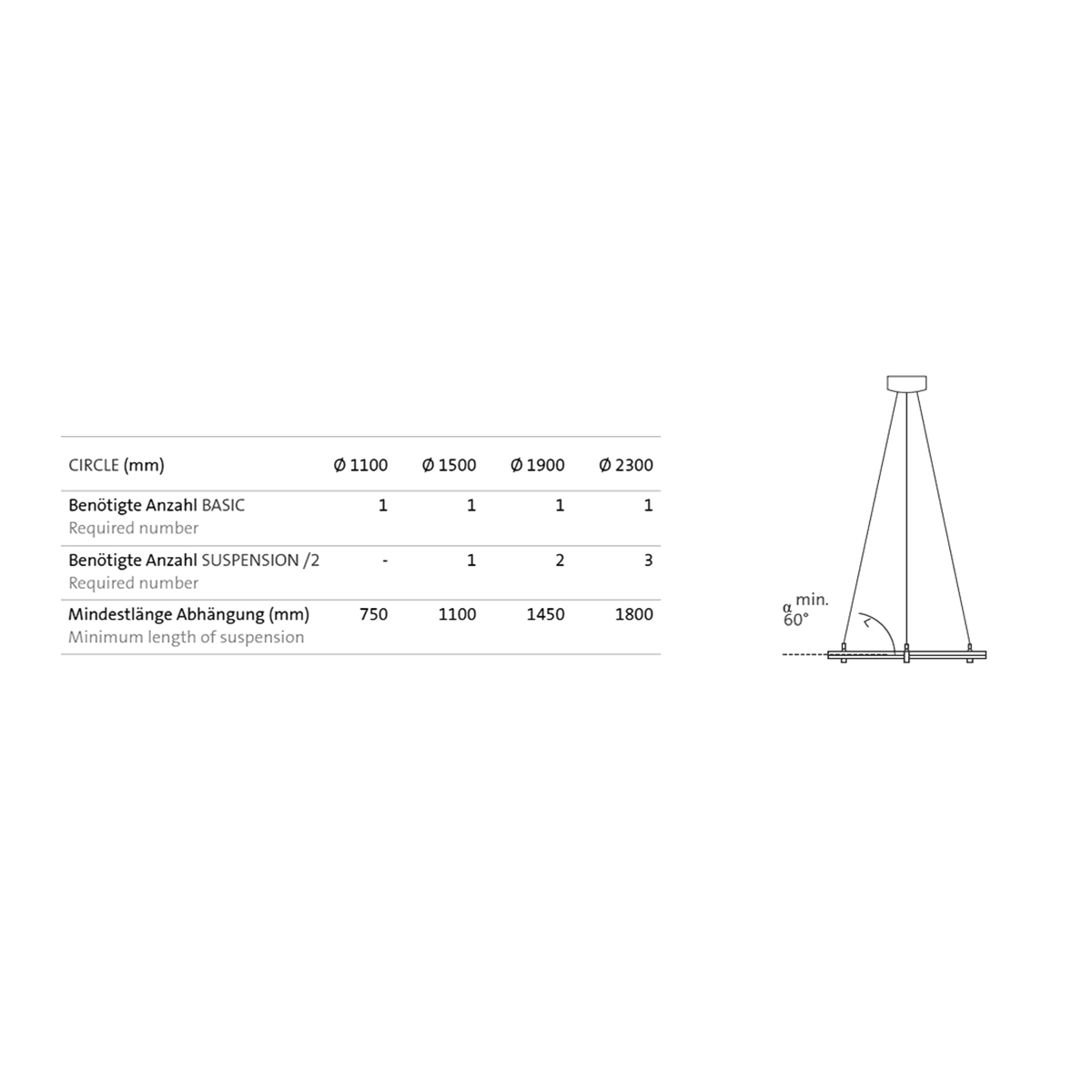 - Für die Sets Ø: 150 cm, Ø: 190 cm und Ø: 230 cm werden zusätzliche nicht stromführende Abhängungungen benötigt, sie sind bereits im Set enthalten