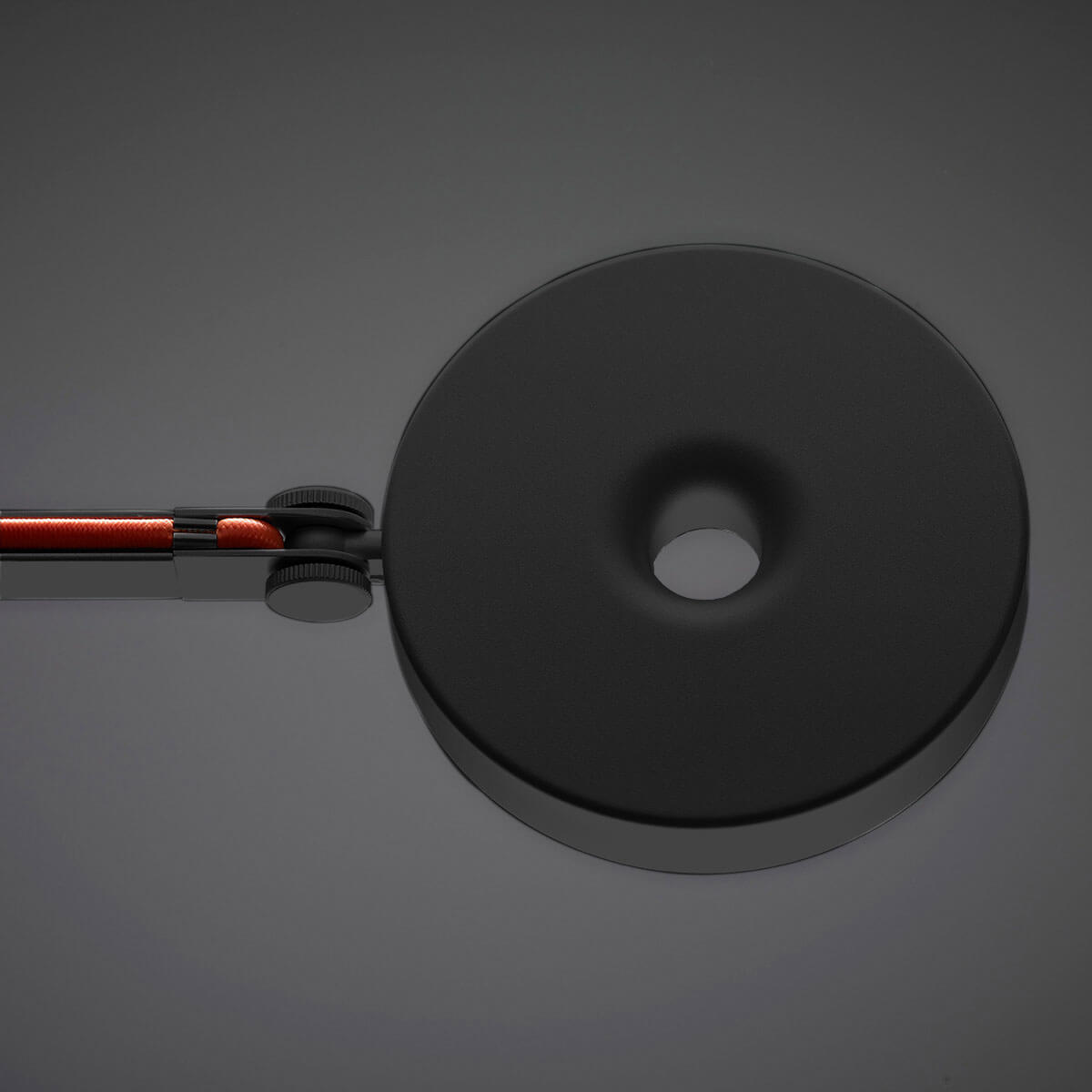 Die String XL von Rotaliana ist die große Version der String Tischleuchte. Es ist eine regulierbare Stehlampe, entworfen um ein Gebiet des Hauses von oben zu beleuchten: eine Ecke der Couch, des Esstischs, des Bürobereiches. Der Drehzapfenkopf ist aus gespritztem Aluminium und Polykarbonat, wohingegen der Leuchtenfuß aus Stahl ist. Die Bewegung der Lampe wird durch die elastische Schnur ersetzt, die aus synthetischem Stoff ist.