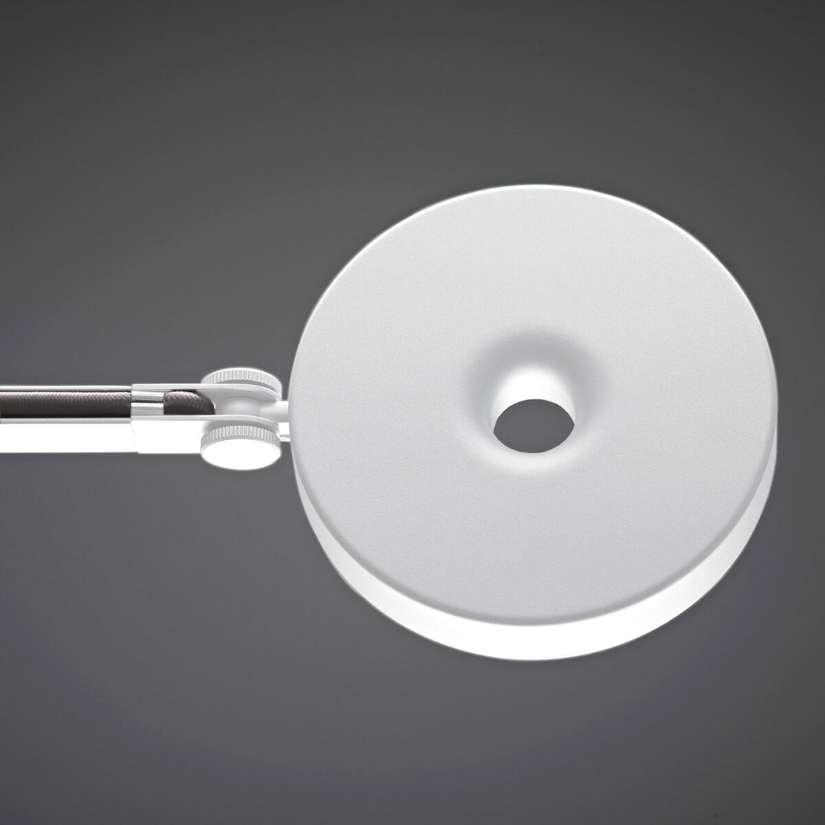 Die String XL von Rotaliana ist die große Version der String Tischleuchte. Es ist eine regulierbare Stehlampe, entworfen um ein Gebiet des Hauses von oben zu beleuchten: eine Ecke der Couch, des Esstischs, des Bürobereiches. Der Drehzapfenkopf ist aus gespritztem Aluminium und Polykarbonat, wohingegen der Leuchtenfuß aus Stahl ist. Die Bewegung der Lampe wird durch die elastische Schnur ersetzt, die aus synthetischem Stoff ist.