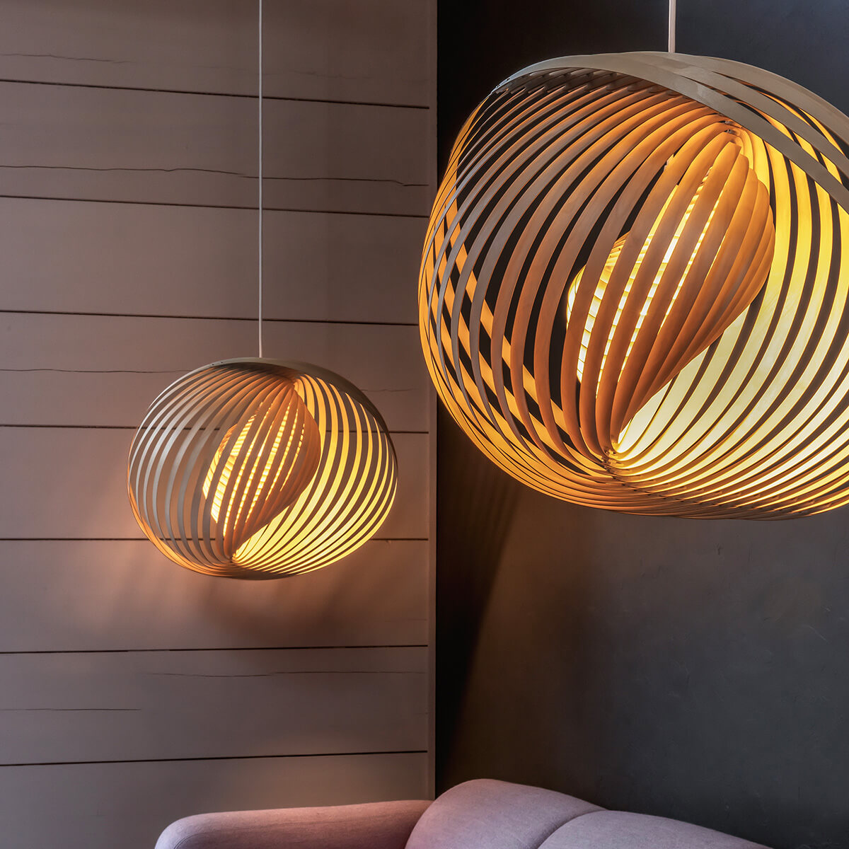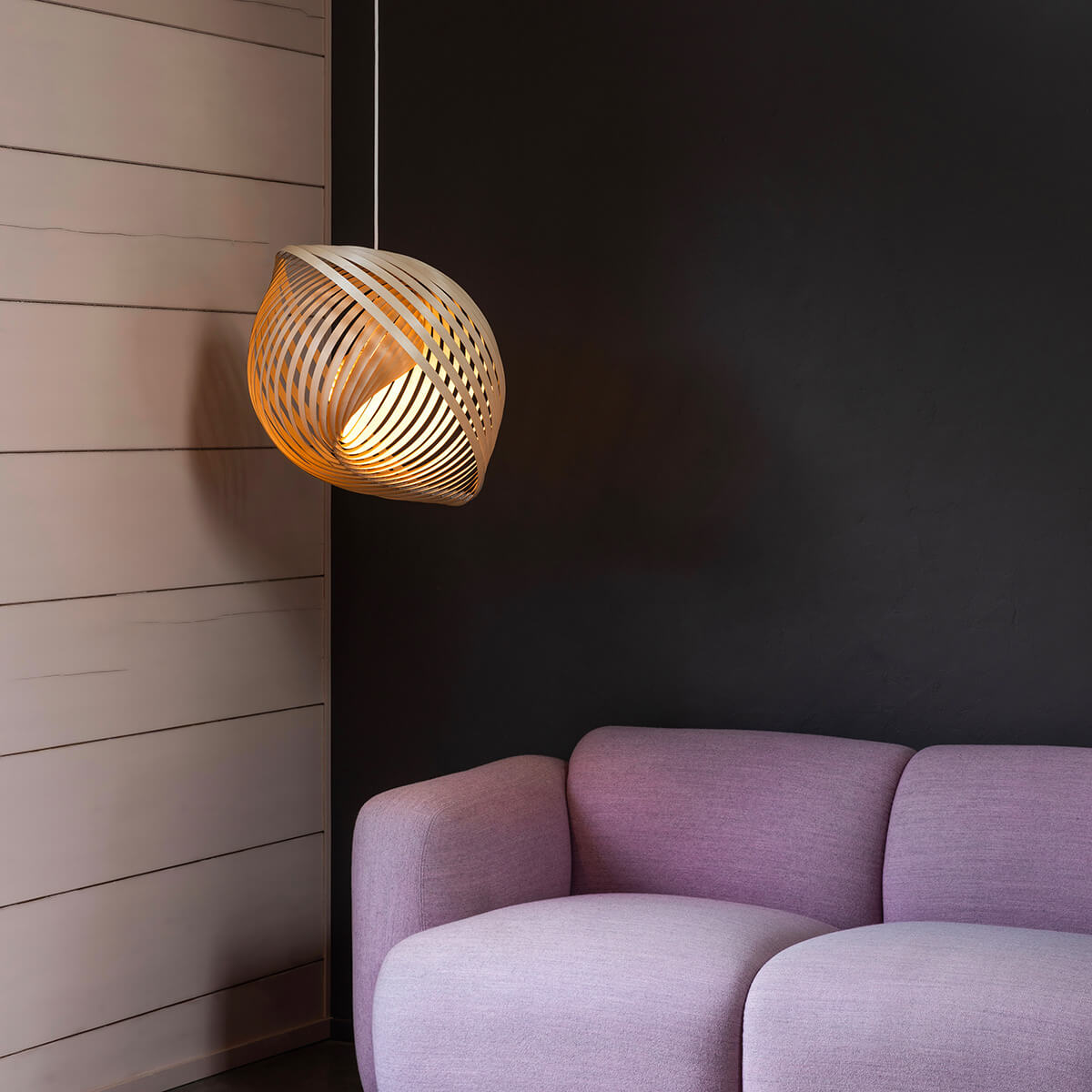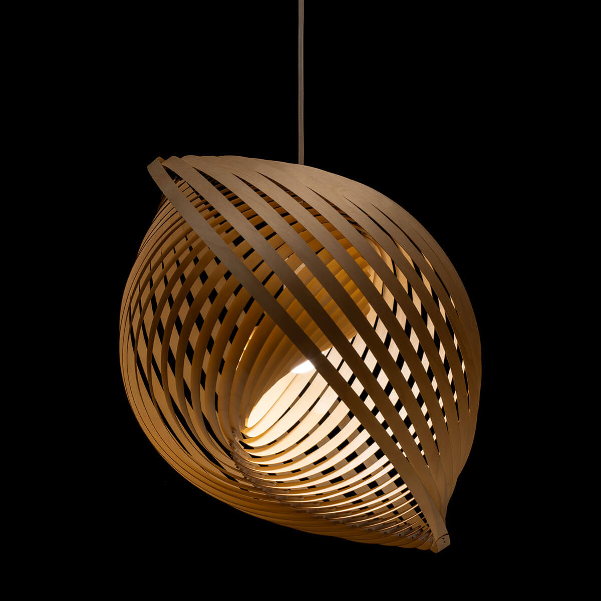 Gefertigt aus ultradünnem, PEFC-zertifiziertem Birkensperrholz, wird jede Leuchte in sorgfältiger Handarbeit in Finnland hergestellt. Das Holz stammt aus verantwortungsvoll bewirtschafteten Wäldern und überzeugt durch seine feine Maserung, Leichtigkeit und Stabilität. In einem einzigartigen Faltprozess verwandelt sich die flache Holzscheibe in eine harmonisch gedrehte, lamellenartige Struktur, die an organische Bewegungen aus der Natur erinnert.