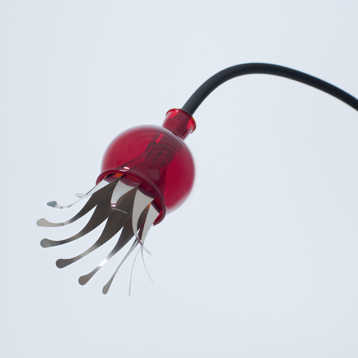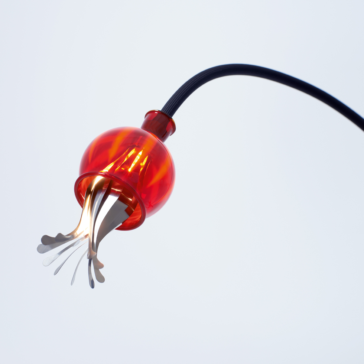 Serien.lighting Poppy Floor 3 Stehleuchte, Schirme: rubinrot, Arme: schwarz, Öffnen der Bimetall-Blätter