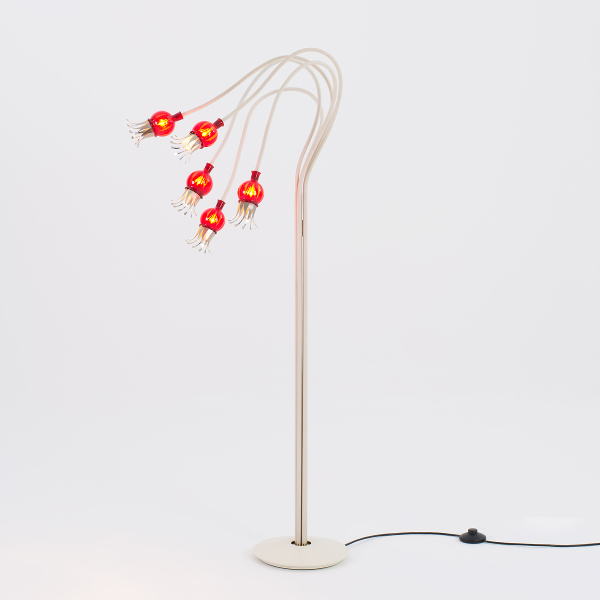 Serien.lighting Poppy Floor 5 Stehleuchte, Schirme: rubinrot, Arme: beige