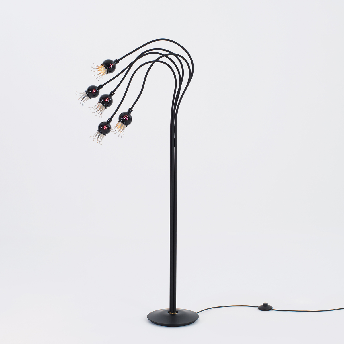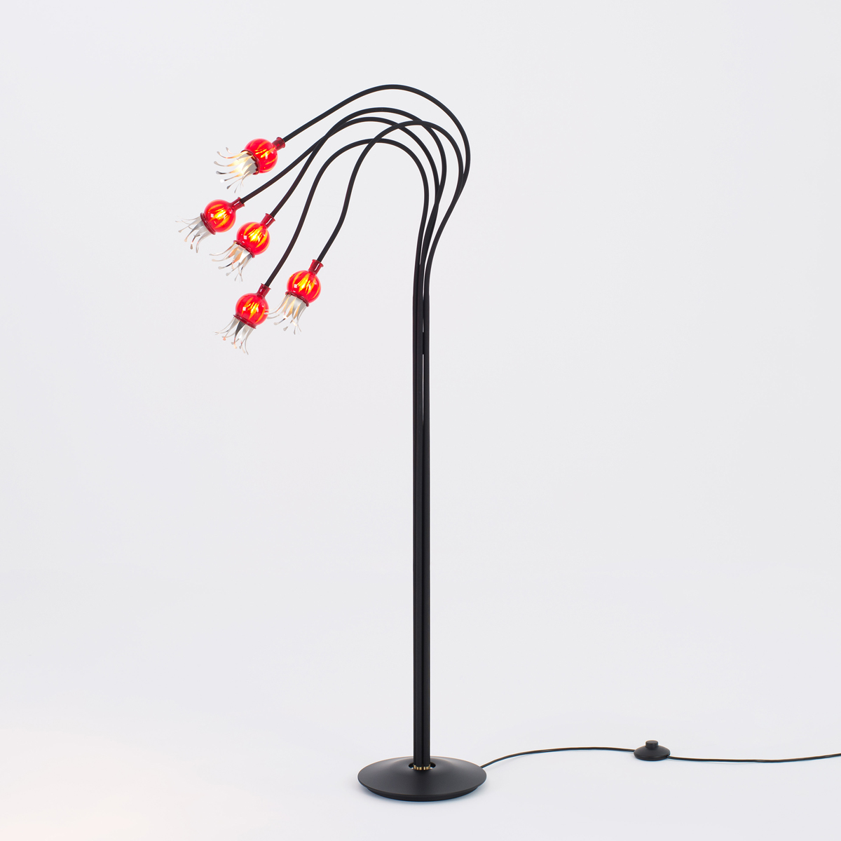 Serien.lighting Poppy Floor 5 Stehleuchte, Schirme: rubinrot, Arme: schwarz