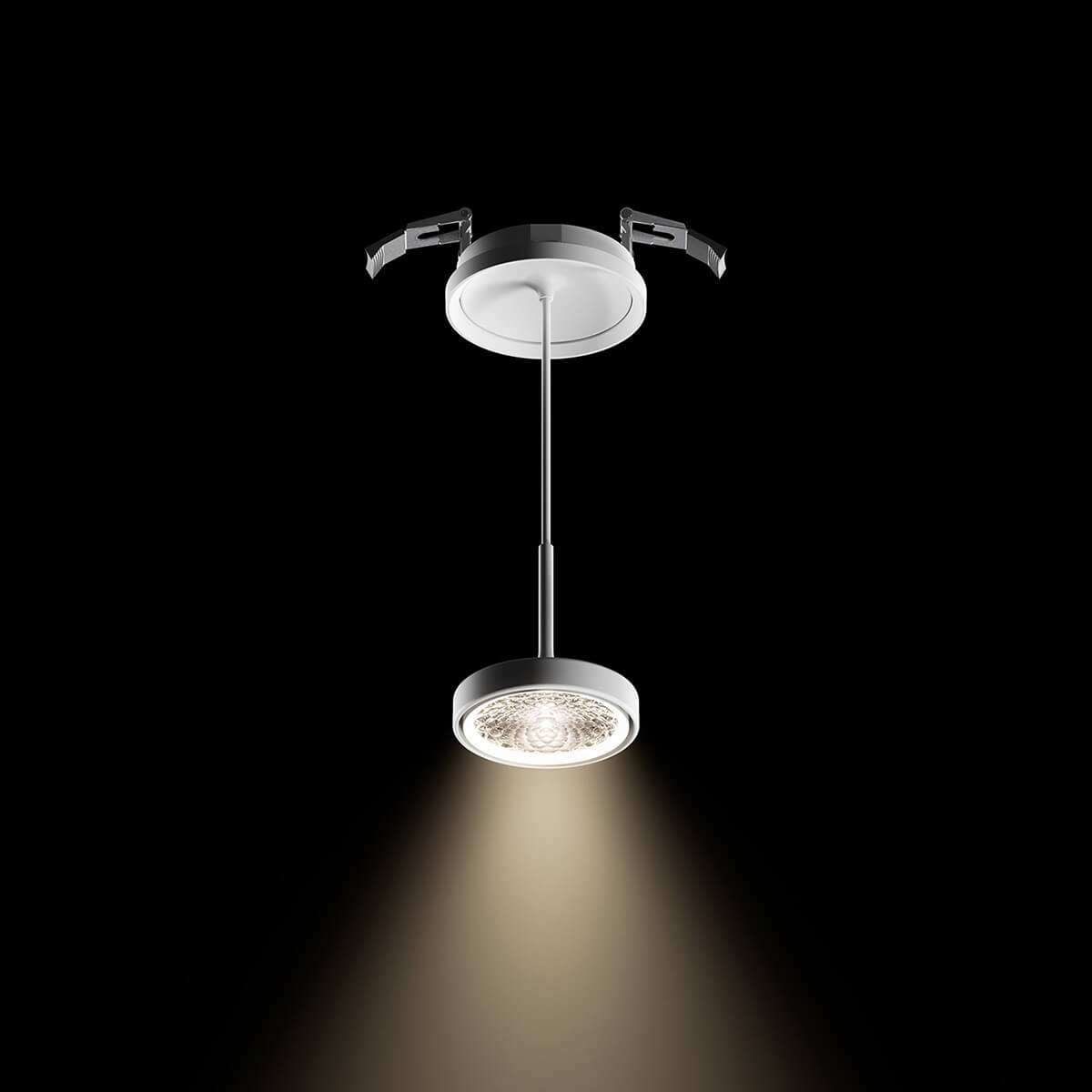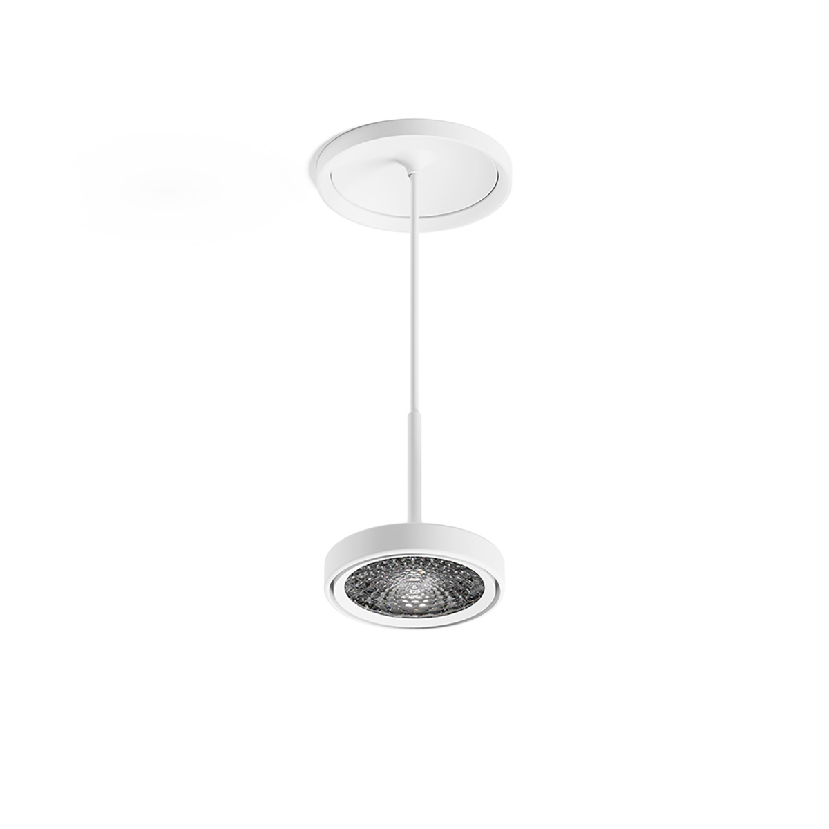 Erhältlich ist die Pendellampe mit zwei verschiedenen Abstrahlwinkeln: Der breitere Winkel von 50° eignet sich hervorragend zur gleichmäßigen Ausleuchtung größerer Flächen, während der engere Winkel von 36° das Licht gezielt auf bestimmte Bereiche konzentriert, um definierte Hell- und Dunkelzonen zu gestalten. Diese Flexibilität macht die Nivo zu einem vielseitigen Instrument in der professionellen Lichtplanung.