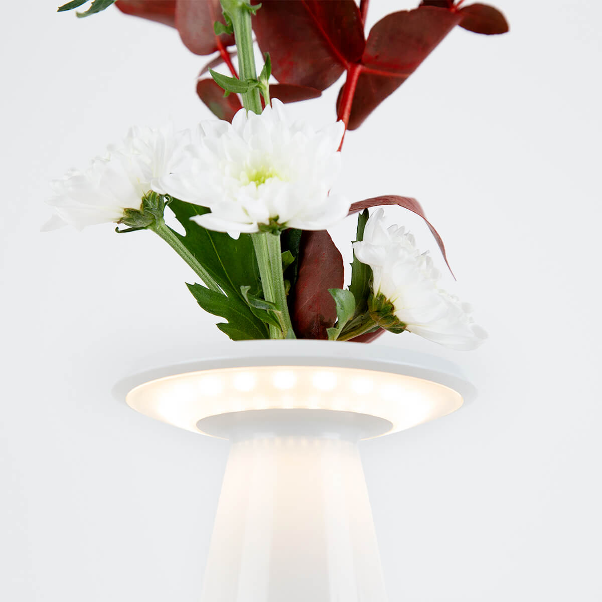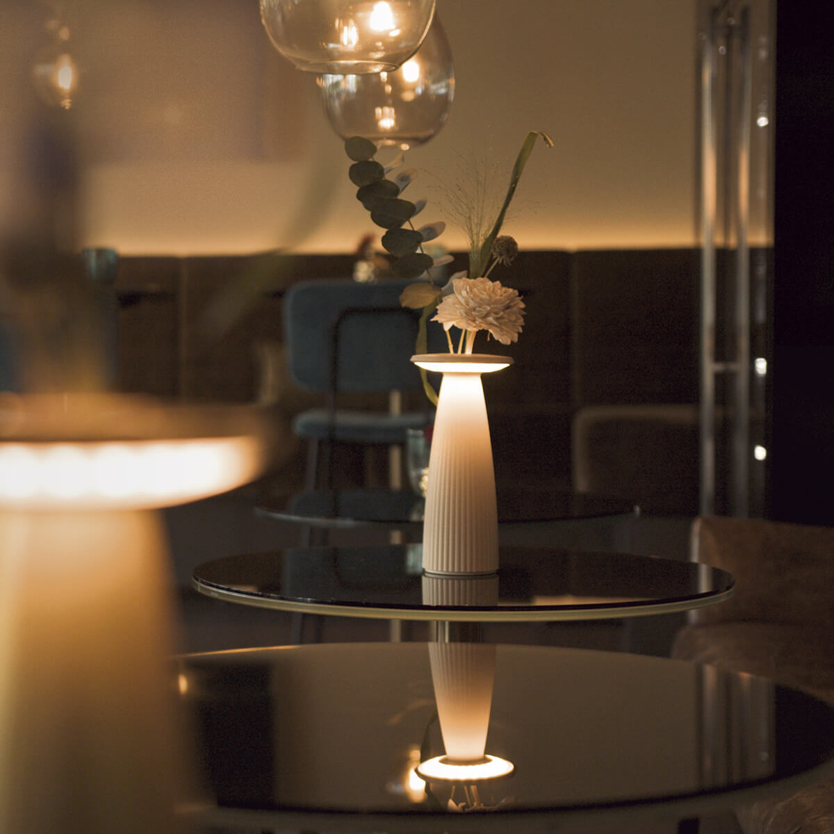 • Mobile Akku-Tischlampe mit eingelassener Blumenvase