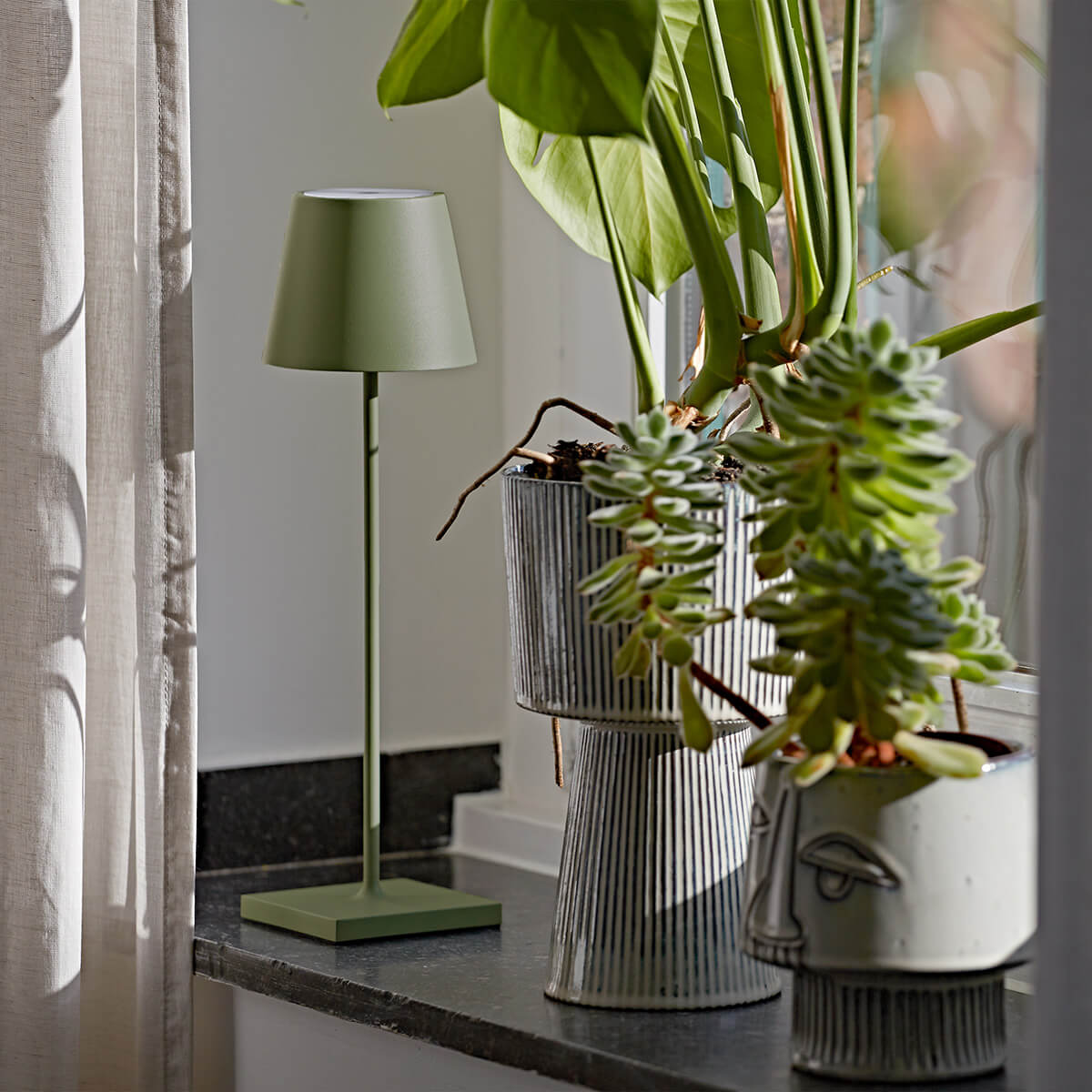 Die dimmbare Nuindie LED Akku-Tischleuchte ist ein stylisher Begleiter für drinnen und draußen. Nutzen Sie die schicke Akkulampe als Akzentlicht auf Fensterbrett, Sideboard und Beistelltisch – oder nehmen Sie sie mit auf Terrasse und Balkon, um sich Freiluftdinner und Grillparty mit ihrem Licht zu verschönern.