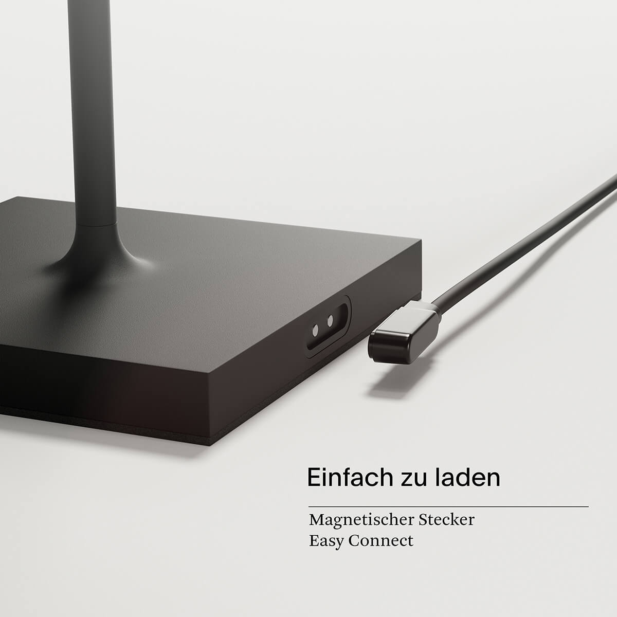 Der in der Nuindie verbaute Akku verspricht bei maximaler Lichtstärke bis zu 12 Stunden kabelloses Licht. Im gedimmten Zustand hält die Leuchte sogar bis zu 24 Stunden durch. Wiederaufgeladen wird die Akkulampe mittels beiligendem Ladekabel und USB-Netzteil. Je nach Modell verfügt das Kabel über einen USB-C- oder magnetischen Easy-Connect-Anschluss, was das Andocken an den Leuchtensockel besonders einfach macht.
