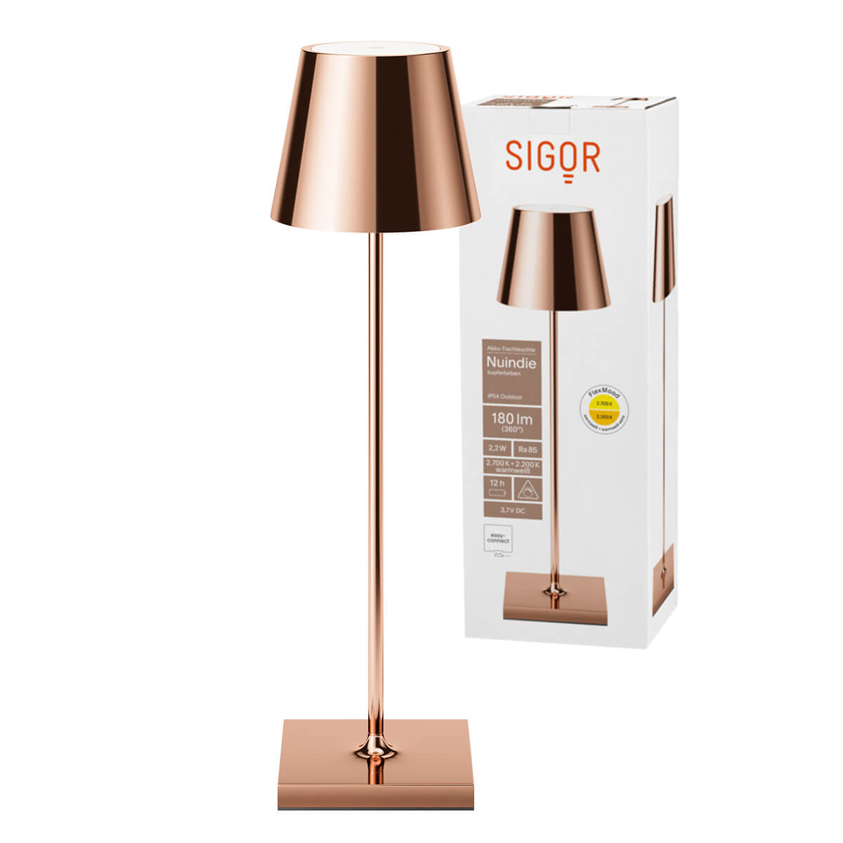 Erhältlich ist die mobile Sigor Nuindie Tischleuchte in vielfältigen zeitgenössischen Farben sowie verschiedenen eloxierten Metallnuancen für einen aparten Look. Auf diese Weise bietet sich Ihnen ein Modell passend zu Geschmack und persönlichem Interior Design. Für ihre Ästhetik und vielseitige Funktionalität erhielt die Leuchte 2019 die Auszeichnung "2. Platz Leuchte des Jahres".