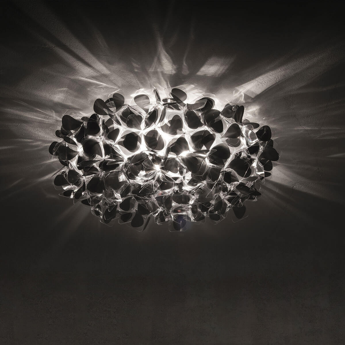 Fügen Sie Ihrer Einrichtung eine visuell beeindruckende Lichtquelle hinzu – mit der Clizia Mama non Mama Ceiling / Wall Large von Slamp. Inspiriert von der Schönheit der Natur, präsentiert sich diese Wand- und Deckenleuchte in einer bezaubernden, floral anmutenden Form. Sie erzeugt ein harmonisches Raumlicht, das die Atmosphäre eines jeden Zimmers bereichert.
