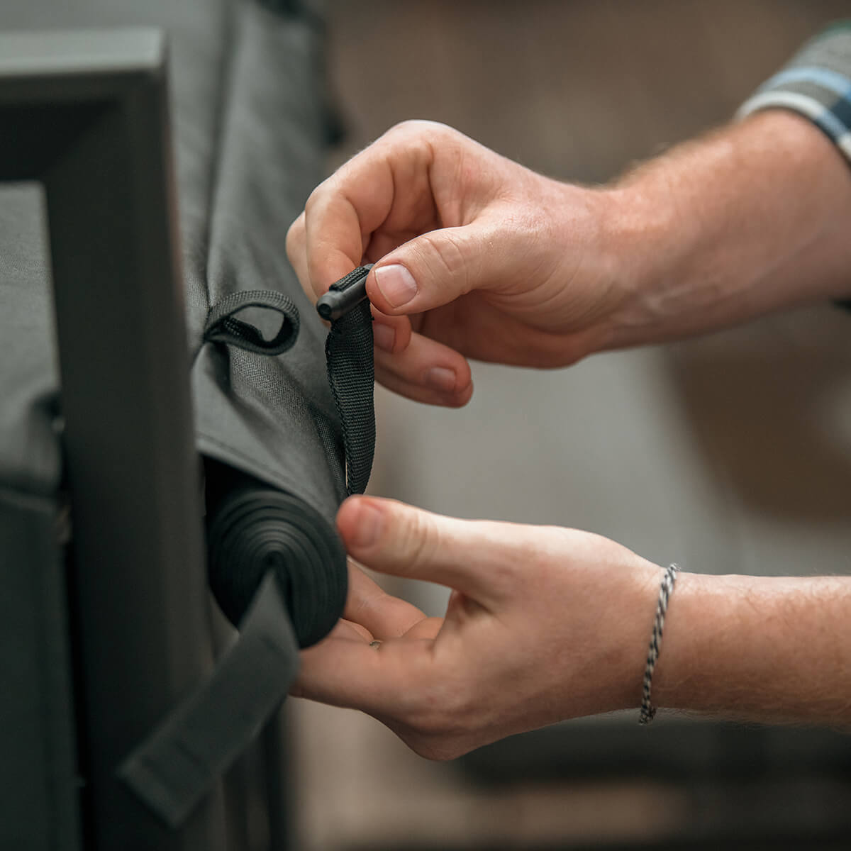 - Mit Planen aus wetterfestem, UV-beständigem Outdoor-Gewebe