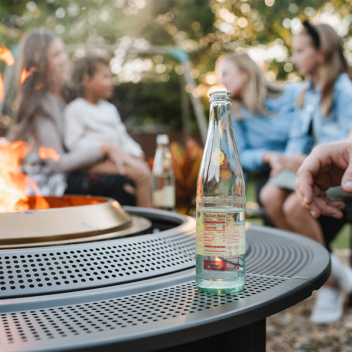 Der Surround bildet eine schützende Umrandung um die Feuerschale und sorgt für eine angenehme Balance aus Sicherheit, Funktionalität und Design. Besonders in Haushalten mit Kindern oder Haustieren schafft die Konstruktion eine zusätzliche Schutzbarriere, ohne die Wärme und das Ambiente des Feuers zu beeinträchtigen. Gleichzeitig bleibt das Material angenehm kühl, sodass Sie Getränke, Snacks oder Grillutensilien während des Feuers auf der Tischplatte abstellen können.
