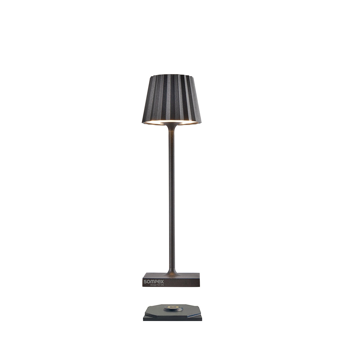 Die akkubetriebene Troll Nano Outdoorleuchte von Sompex ist eine vielseitige, charmante Beleuchtungslösung für drinnen und draußen. Mit ihrem unverkennbaren Plissee-Schirm und dem in verschiedenen Farben gehaltenen Aluminiumgehäuse passt sie perfekt in jede Umgebung. Ob als stimmungsvolles Akzentlicht im Wohnzimmer, als dekorative Beleuchtung auf dem Esstisch oder als Nachtlicht auf dem Beistelltisch – die Troll Nano ist ein echter Hingucker, im Nano-Format.