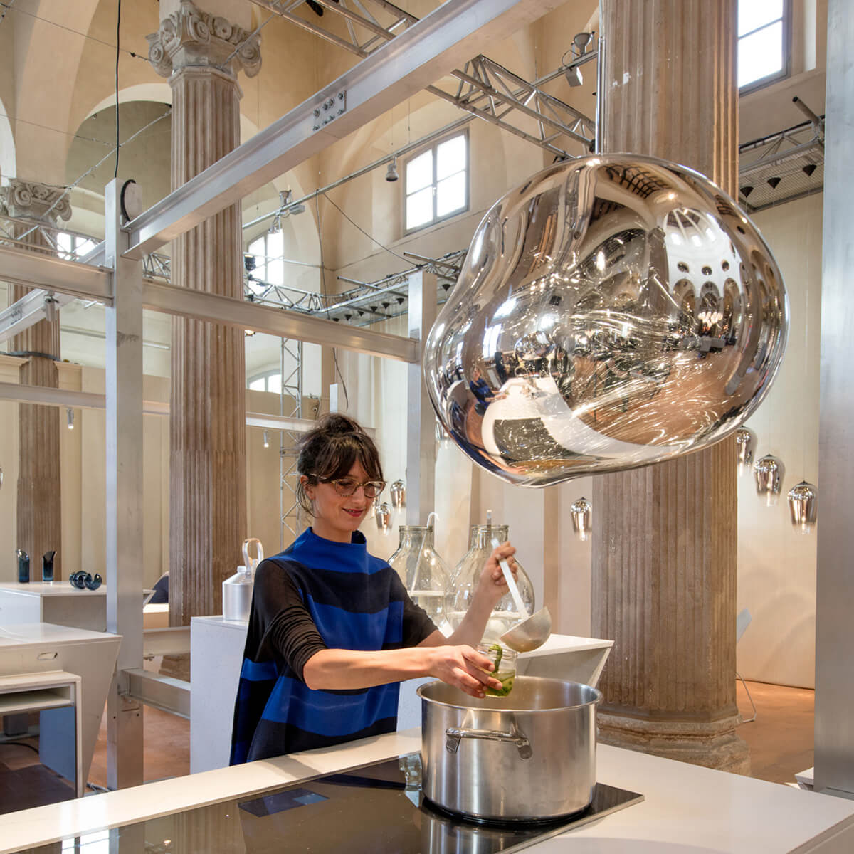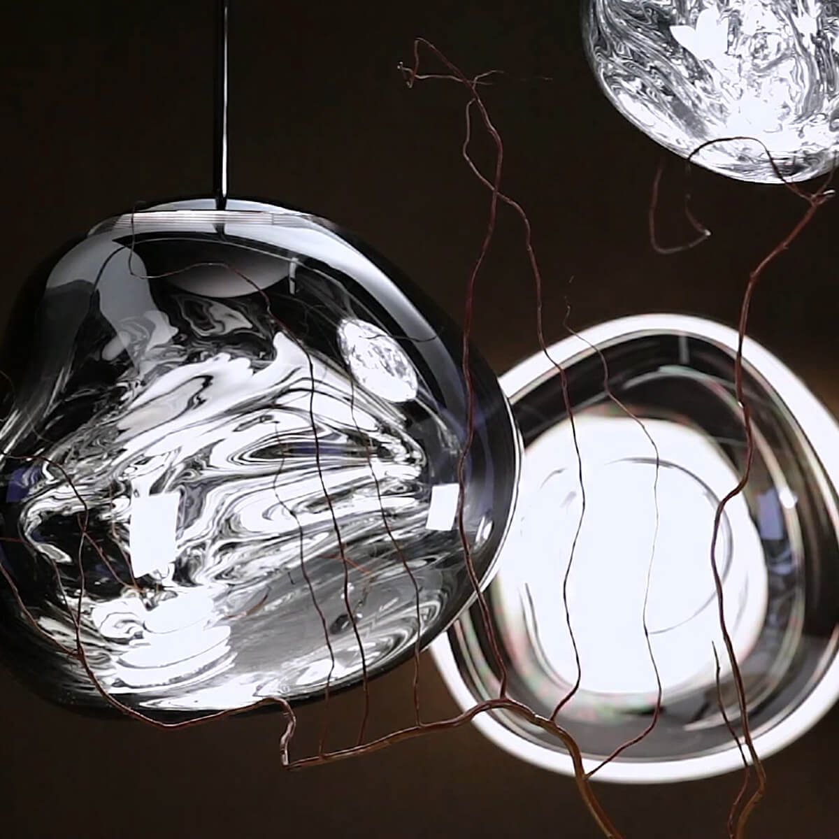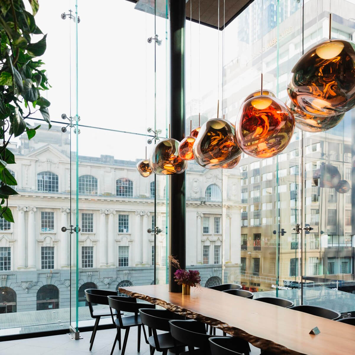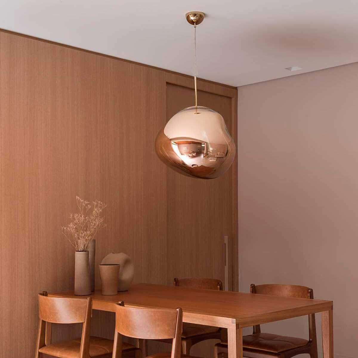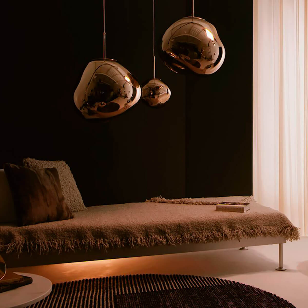 Erhältlich in den edlen Finishes Kupfer, Silber, Gold, Bronze und Smoke sowie in einer opaleszenten Variante mit silberner oder goldener Aufhängung, passt sich die Tom Dixon Melt Lampe mühelos an verschiedene Raumkonzepte an. Ob als einzelner Blickfang über einem Esstisch oder als Teil einer größeren Installation in Lobbys und Foyers – die Melt setzt überall stilvolle Akzente.