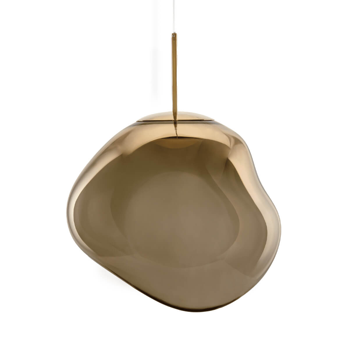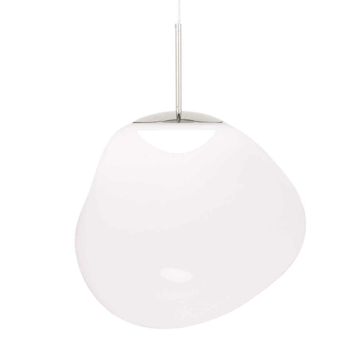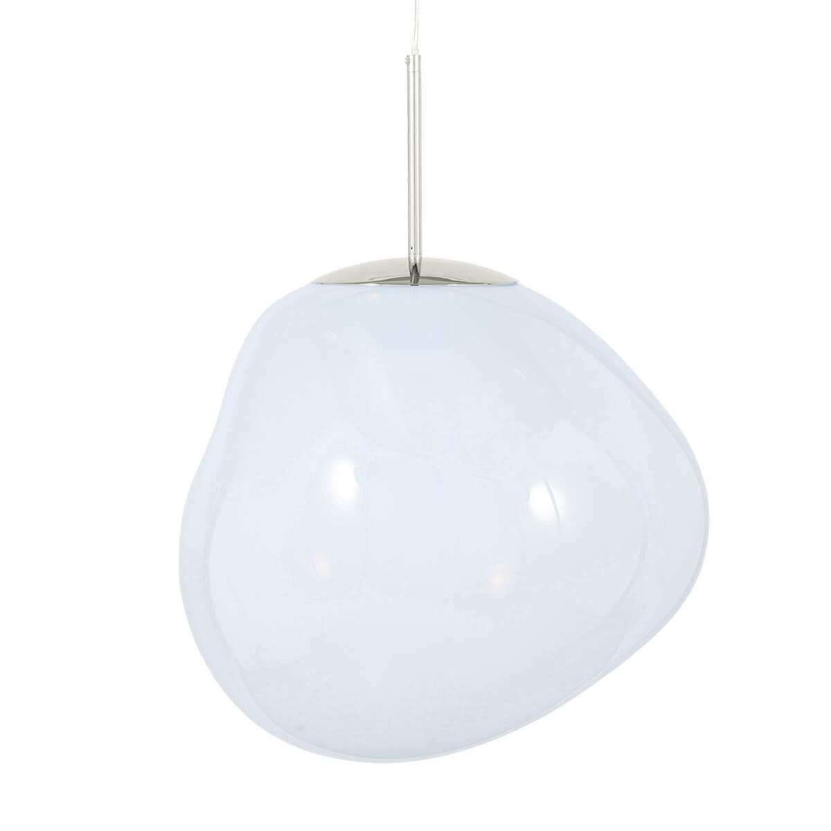 Die Melt Medium Pendant von Tom Dixon ist ein außergewöhnliches Designobjekt, das Räume in ein faszinierendes Licht taucht und wie eine schwebende Skulptur wirkt. Ihre verzerrte, organische Form erinnert an geschmolzenes Glas oder fließende Gletscher und sorgt für ein atemberaubendes Spiel aus Licht und Reflexion. Im eingeschalteten Zustand leuchtet die Pendelleuchte von innen heraus, während sie ausgeschaltet mit ihrer spiegelartigen Oberfläche beeindruckt.