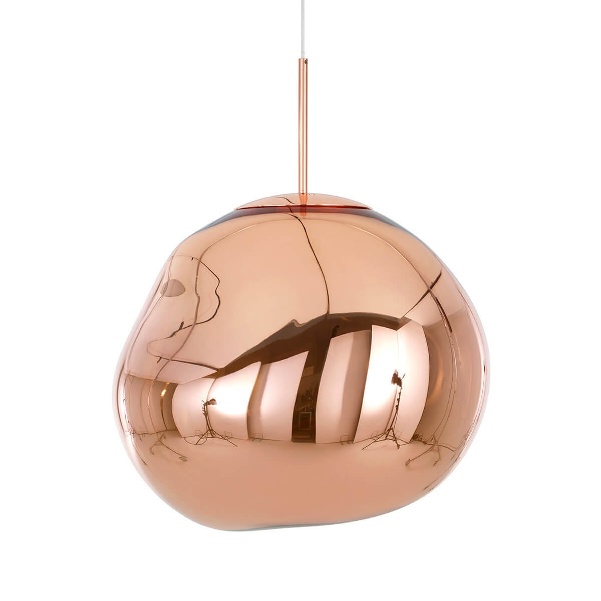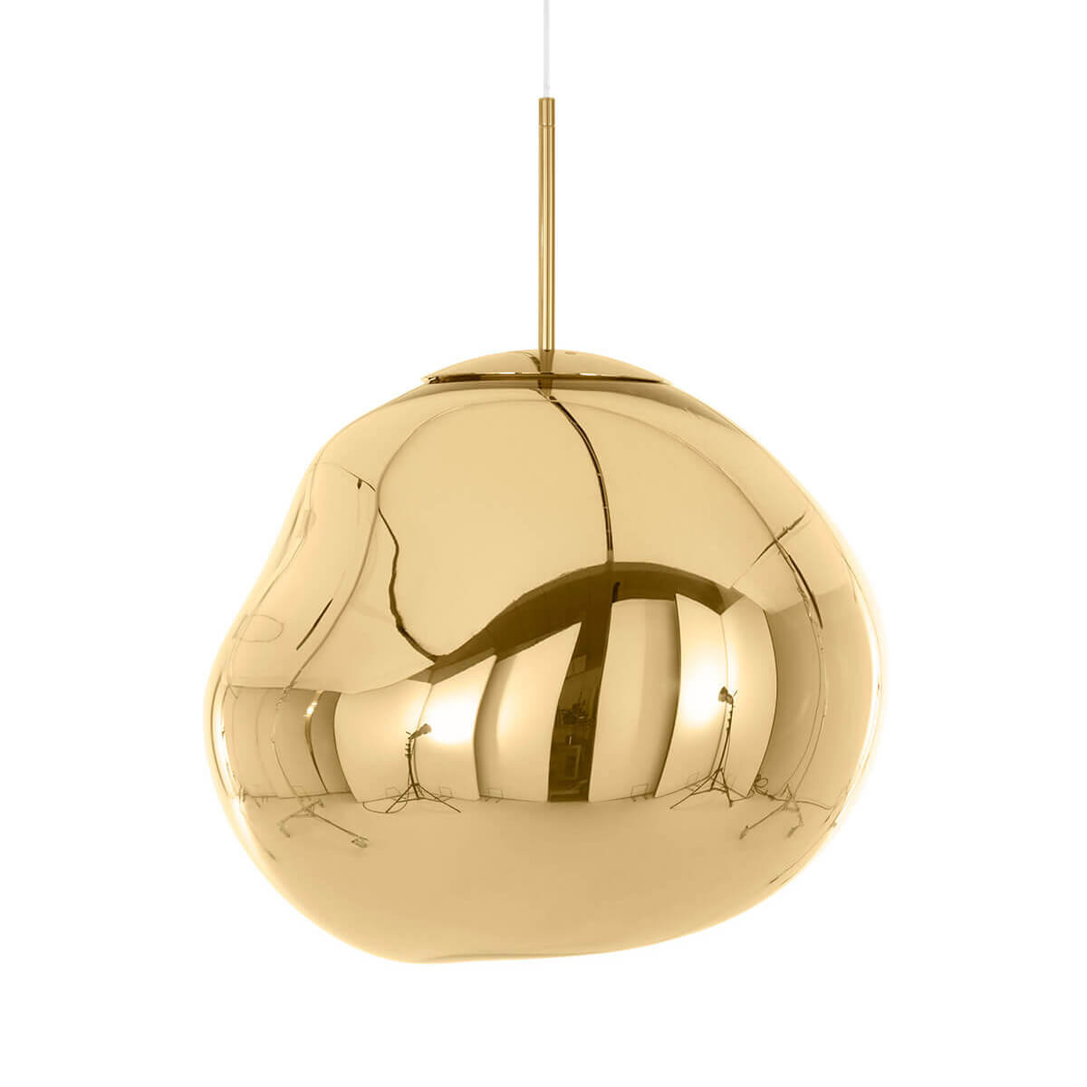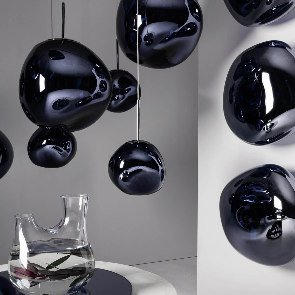 Die Melt Medium Pendant von Tom Dixon ist ein außergewöhnliches Designobjekt, das Räume in ein faszinierendes Licht taucht und wie eine schwebende Skulptur wirkt. Ihre verzerrte, organische Form erinnert an geschmolzenes Glas oder fließende Gletscher und sorgt für ein atemberaubendes Spiel aus Licht und Reflexion. Im eingeschalteten Zustand leuchtet die Pendelleuchte von innen heraus, während sie ausgeschaltet mit ihrer spiegelartigen Oberfläche beeindruckt.