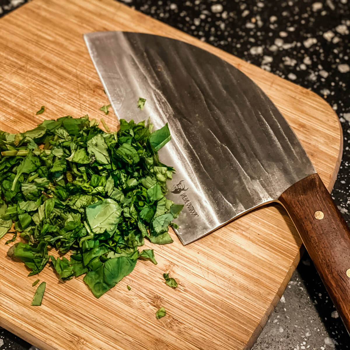- Valhal Outdoor Logo auf der Klinge