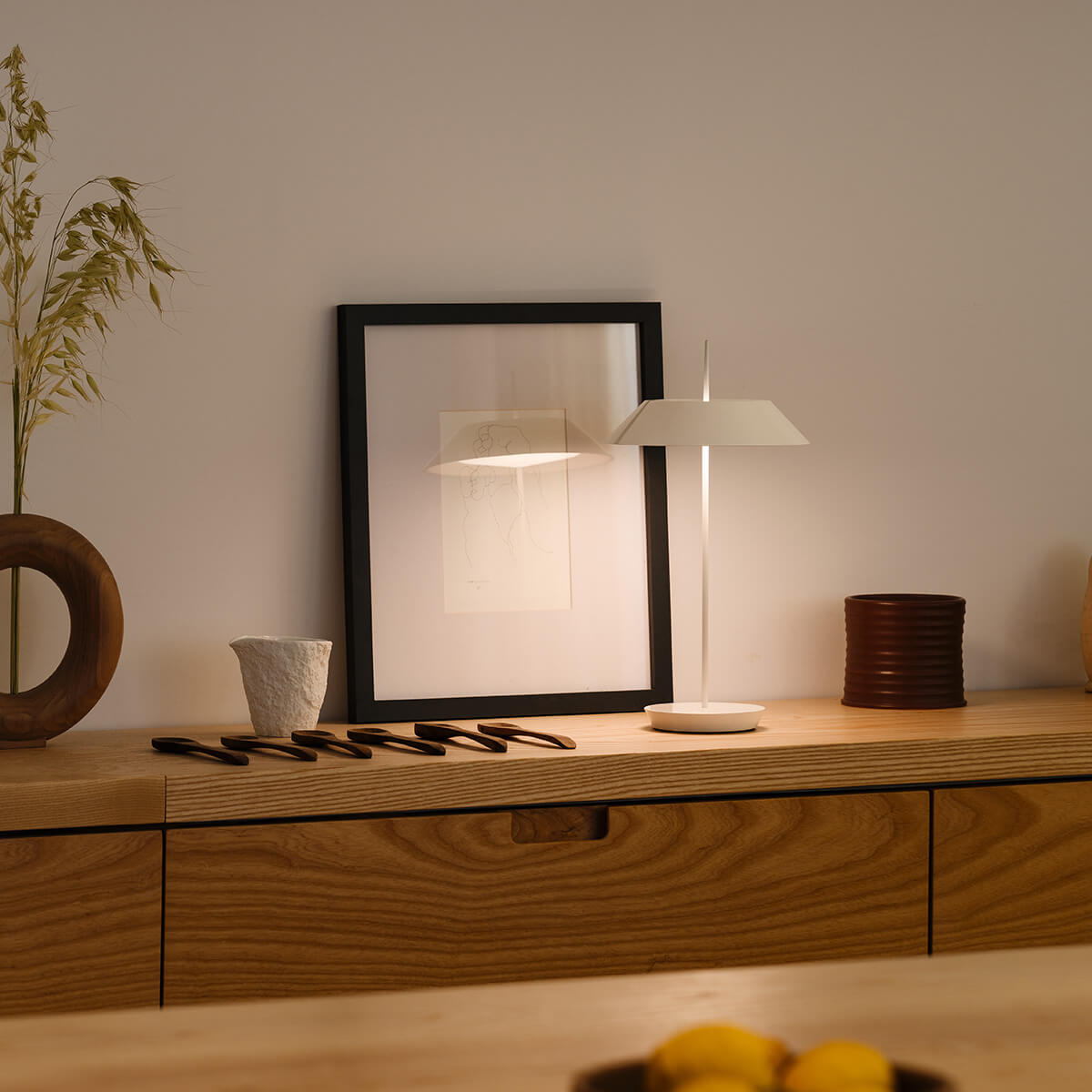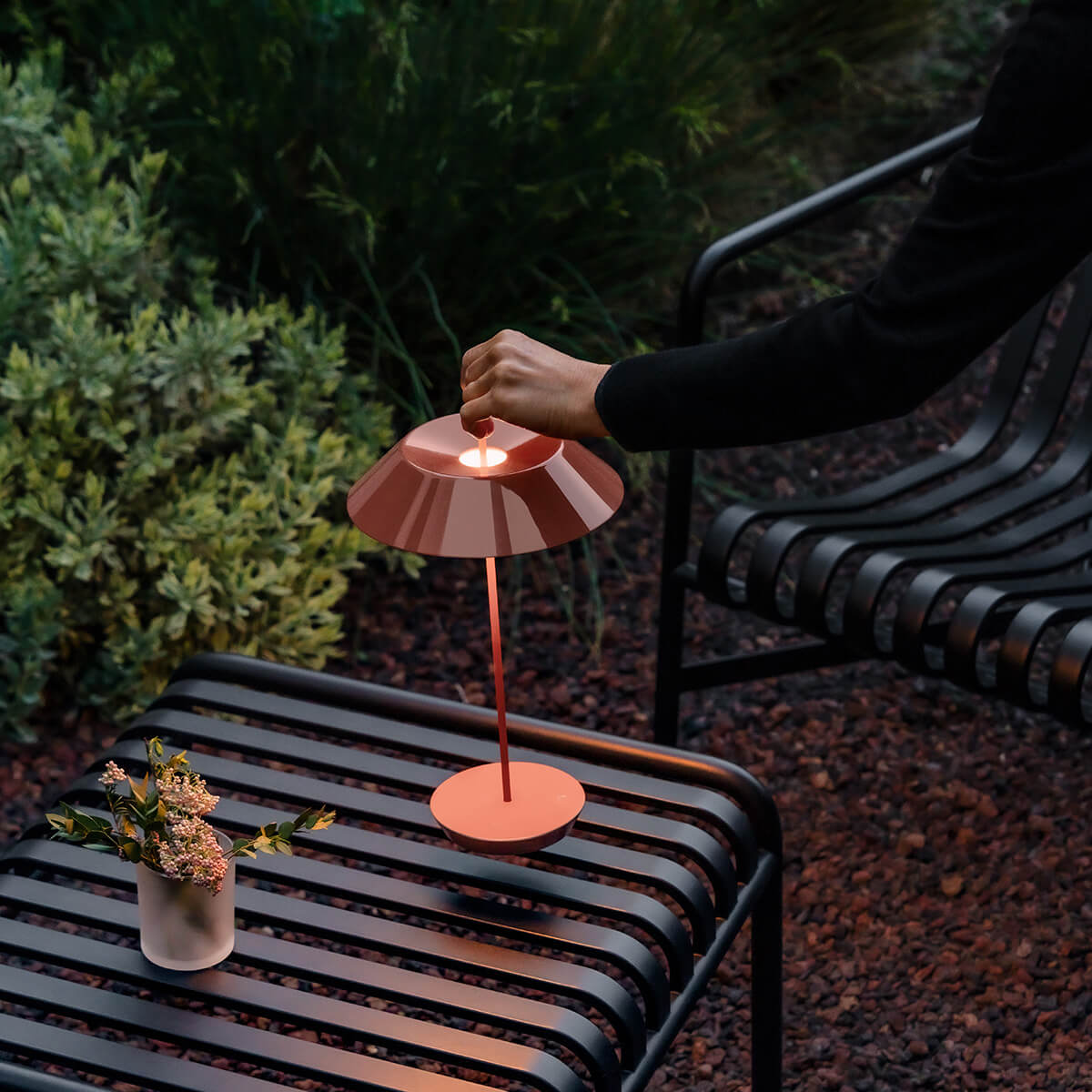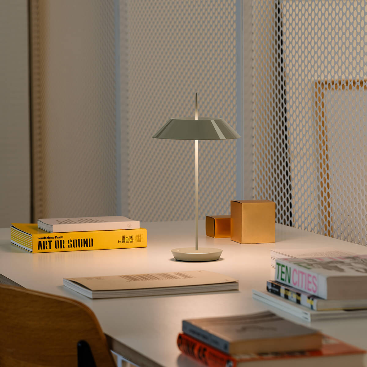 Die Mayfair Mini von Vibia, entworfen von Diego Fortunato, ist eine Hommage an die klassische Bouillotte-Lampe des 19. Jahrhunderts, neu interpretiert für den modernen Gebrauch. Die kabellose Tischleuchte kombiniert eine modische Farbpalette mit einer überraschend klaren, skulpturalen Form, die Eleganz und Ausgewogenheit ausstrahlt. Trotz ihrer kleinen Größe ist die Mayfair Mini eine Lampe mit beeindruckender Persönlichkeit.
