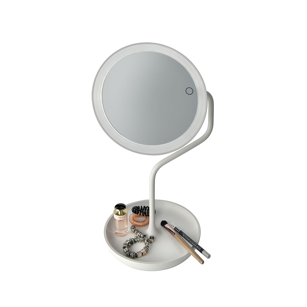 • Mobile Akkulampe mit Ablage und drehbarem Kosmetikspiegel