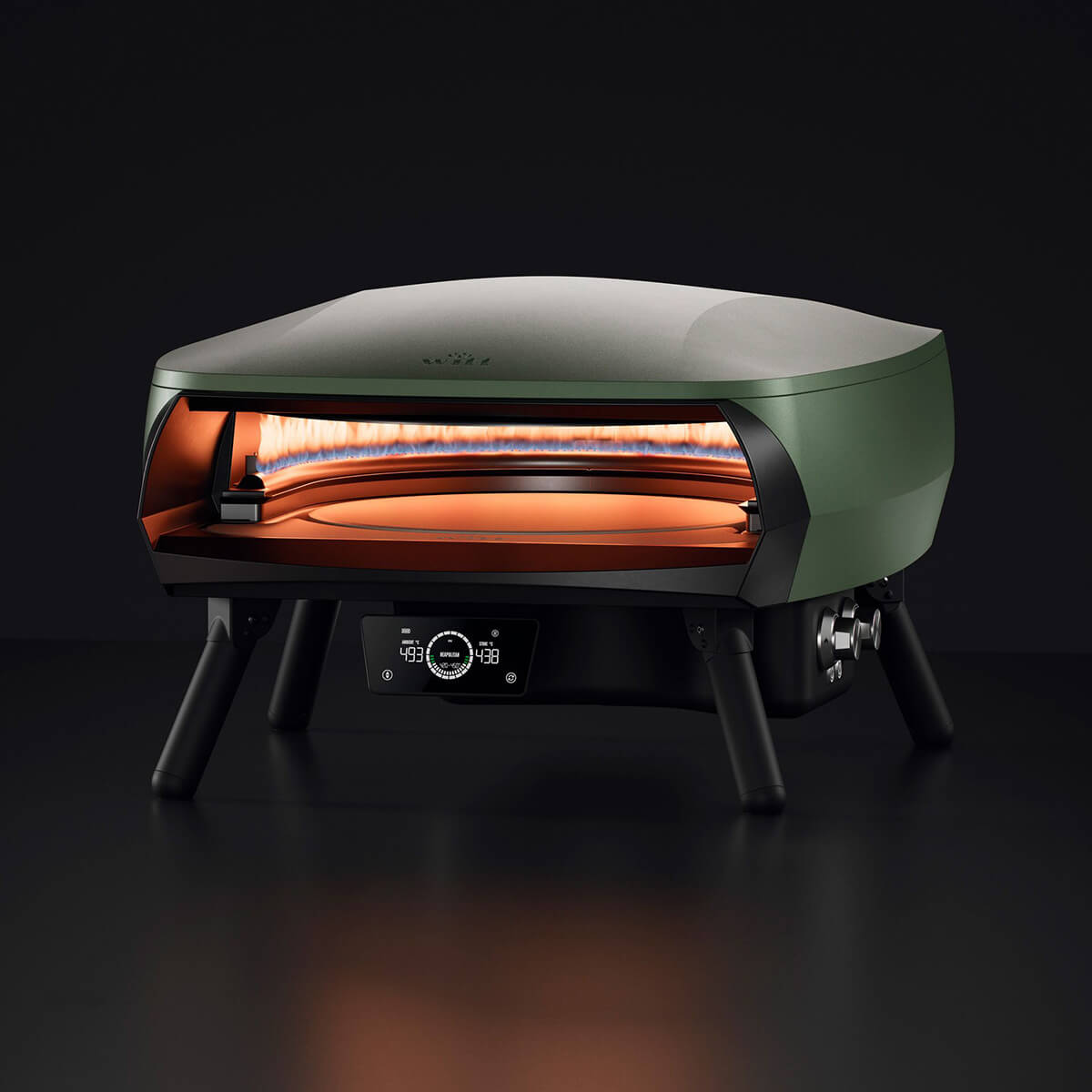 Für die effiziente Hitzeentwicklung sorgen gleich zwei Brenner mit einer Gesamtleistung von 9,2 kW: ein U-förmiger Hauptbrenner für intensive Oberhitze und ein Booster-Brenner unter dem Pizzastein, der die Temperatur des Steins stabil hält. Genau das ist ein Vorteil beim Pizzabacken, denn ein heißer Stein ist entscheidend für einen krossen Boden und konstant starke Ergebnisse – auch dann, wenn mehrere Pizzen nacheinander gebacken werden. Der Ofen erreicht in rund 15 Minuten Temperaturen von bis zu 500 °C, und die Pizza ist in nur 60 bis 90 Sekunden fertig.