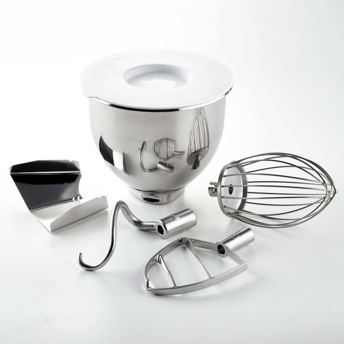 Auch in Sachen Zubehör überzeugt der Witt Teddy Varimixer mit professionellem Anspruch. Zum Lieferumfang gehören neben der Schüssel samt Deckel auch ein Rührwerk, Knethaken und Schneebesen aus rostfreiem Edelstahl, zudem ein Einfülltrichter und abnehmbarer Spritzschutz. Die durchdacht gestalteten Werkzeuge sorgen dafür, dass Teige intensiv geknetet, gleichmäßig verrührt und luftige Ergebnisse erzielt werden. Alle Accessoires aus Edelstahl sind robust, hygienisch und auf den täglichen Einsatz ausgelegt.