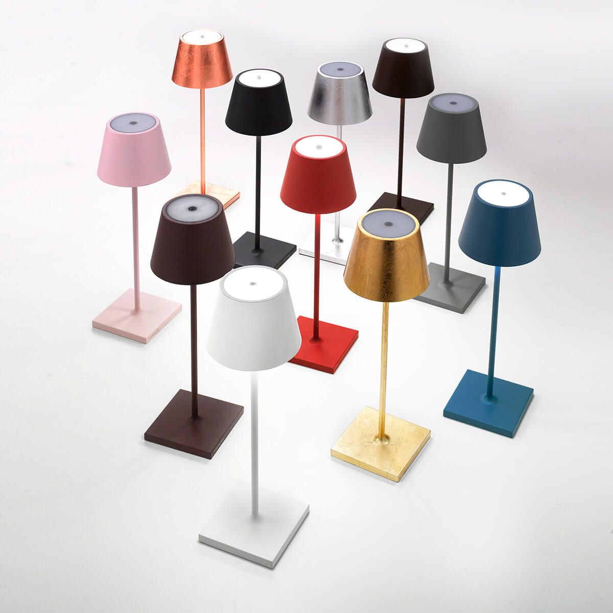 Sichern Sie sich das Original aus Italien – zum attraktiven Vorteilspreis im Bündelangebot! Das hier angebotene Set umfasst sechs kabellose Zafferano Poldina Pro Akkuleuchten, dazugehörige Einzel-Kontaktladestationen mit USB-Kabel und eine Multi-Kontaktladestation, mit der sich alle Leuchten gleichzeitig wieder aufladen lassen. Das Angebot ist perfekt für Hotellerie, Gastronomie und Catering, wo sie auf Bistrotischen, Theken und Beistelltischen dekorative Lichtpunkte setzen.