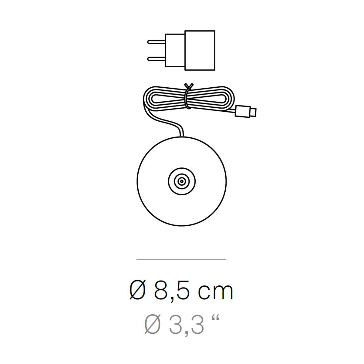 Für einen besonders komfortablen Ladeprozess wird die Zafferano Olimpia Pro inklusive Einzel-Kontaktladestation geliefert. Möchten Sie die Akkuleuchte aufladen, schließen Sie das Ladegerät einfach an das Stromnetz an und platzieren Sie die Leuchte auf der Stellfläche. Olimpia lässt sich auch dann nutzen, wenn sie an die Ladestation angeschlossen ist. Alternativ lässt sich ein zertifiziertes Aufladegerät mit max. 5V DC/1A verwenden.