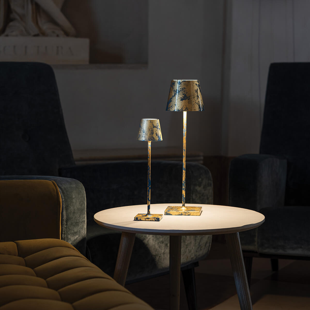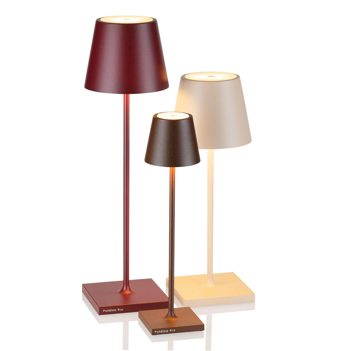 Obwohl alle Modelle der Poldina micro Pro LED-Akkuleuchte für den Innen- und Außenbereich konzipiert sind, bitten wir Sie zu beherzigen, dass die Varianten in Gold und Chrom für einen dauerhaften Gebrauch im Freien nicht vorgesehen sind. Um ihre galvanisierten bzw. blattgoldveredelten Oberflächen zu schützen, sollten sie bei Nichtgebrauch nach drinnen verlegt werden.