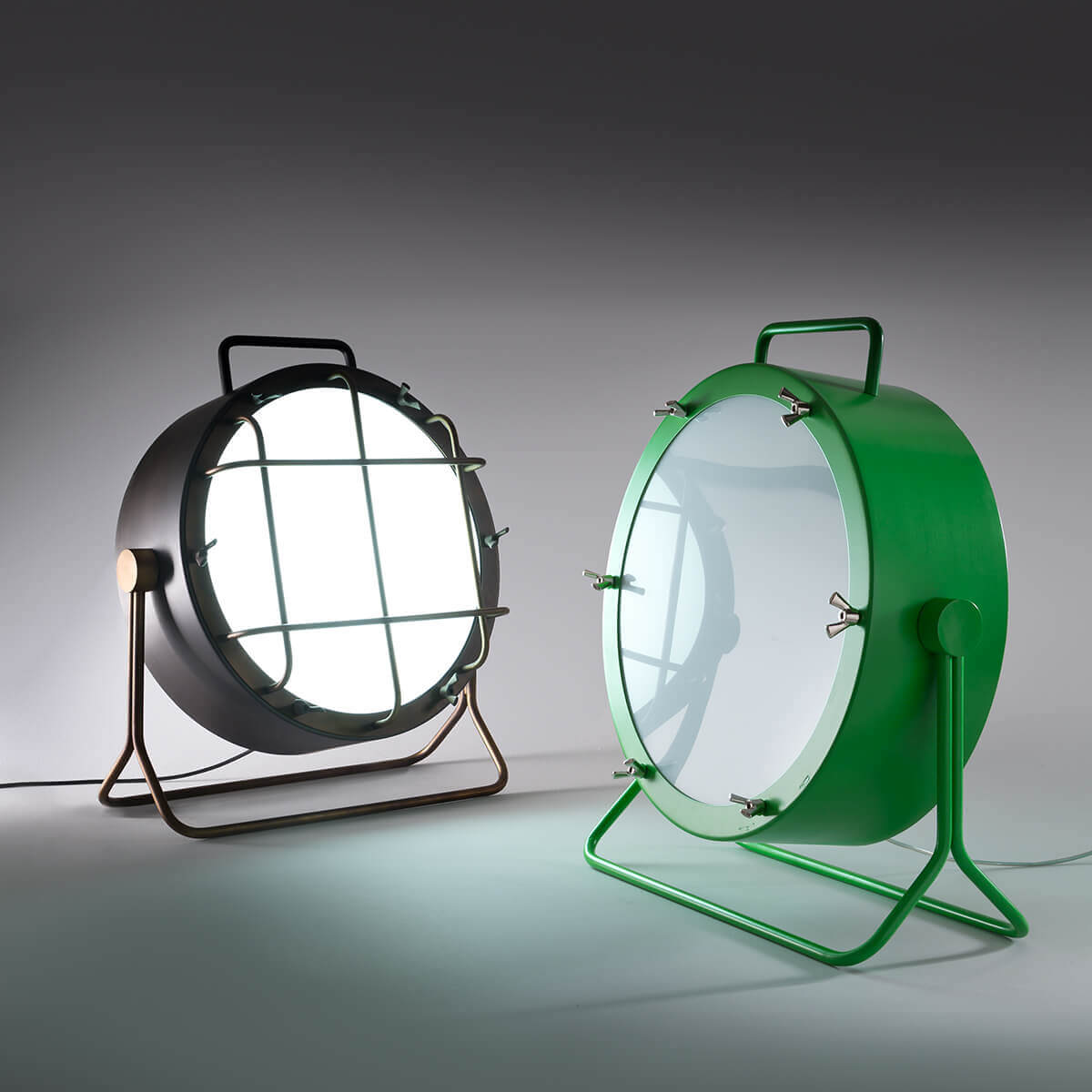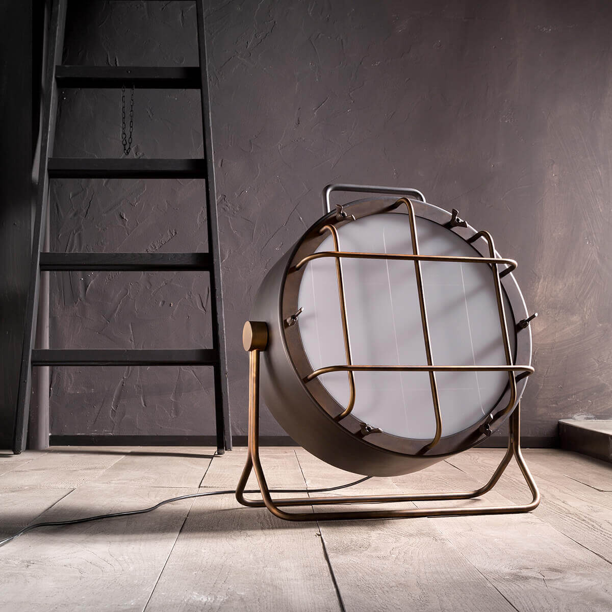 - Steh- / Bodenleuchte im Industrielook mit dem Aussehen eines Baustellenscheinwerfers